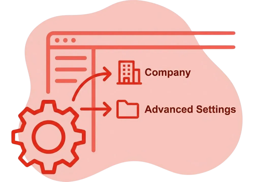 Click the cog icon in the bottom-left sidebar, then select Company, and finally click on the Advanced Settings tab.
